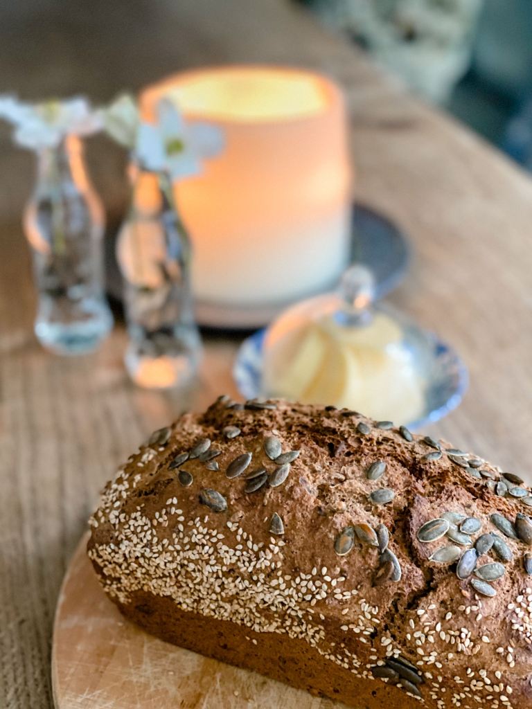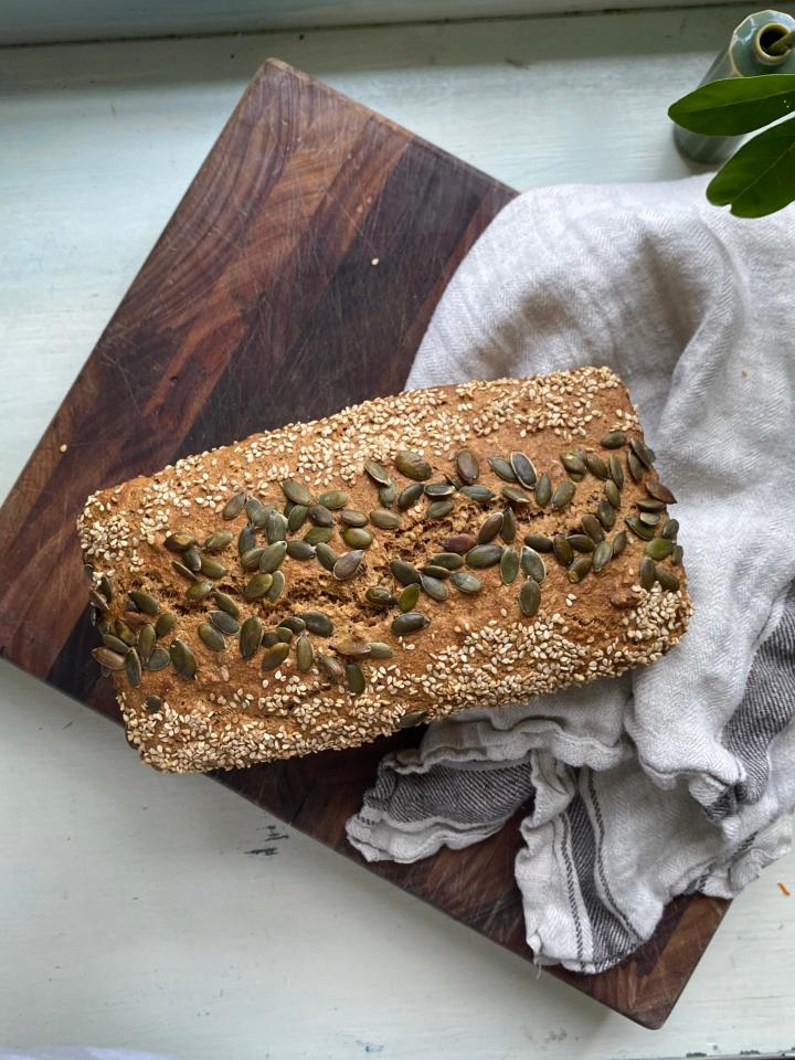 This bread is very filling and one or two slices go a long way. If you are a small household you can slice the second loaf and freeze it straight away. It toasts beautifully straight from frozen.